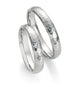 Stark und elegant ist der Auftritt dieser schönen 4 mm breiten Trauringe aus den Ateliers des Hauses Brüder Nowotny. Der glänzend polierte, leicht gewölbte Ringkörper schimmert wunderbar. Minimalistisch wird der Ringrücken von drei filigranen Fugen in vier Bahnen aufgeteilt. Die Wirkung der klaren Formensprache in Verbindung mit den edlen Rohstoffen die zur Auswahl stehen, hier in Weißgold abgebildet, garantieren lebenslange Freude an diesen attraktiven Schmuckstücken. Ein Traum ist der Ehering Ihrer zukünftigen Gattin. Zwischen die beiden äußeren Fugen ist ein großer funkelnder 0,04 karätiger Brillant gesetzt. Die Trauringe sind in Stahl, Palladium, Gelb- Rosè-, Rot- und Weißgold erhältlich. Die Ringe sind auch einzeln oder ohne Brillanten bestellbar. Ebenso ist dieses Modell gegen einen geringen Aufschlag in Unter- und Übergrößen verfügbar. Bitte senden Sie uns bei Fragen eine Email.
