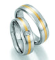Edelstahlringe mit massiver 14 ct. Goldeinlage im 6.0 mm breite. Diese Ringe kommen aus der Steel & Gold Sensation585 Brillant Serie von Collection Ruesch. Der Ring der Dame besitzt 5 Brillanten 0,075 Ct. Herrliche Ringe aus rostfreiem Edelstahl mit einer massiven 14 Ct. Gelbgold-Einlage. Diese Ringe kommen von Collection Ruesch aus der Steel & Gold 585 Brillant Serie. Der Damenring ist mit 5 Brillanten 0,075 Ct. verziert Diese Ringe können auch einzeln bestellt werden, bitte senden Sie uns hierzu eine Email.