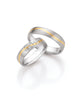 Gelbgold/Edelstahl Trauringe von Collection Ruesch, dem führenden Trauringanbieter aus Österreich. Die Ringe sind 4.5 mm breite und haben einen innen liegenden Goldfließ. Der Damenring besitzt 9 Diamanten.
