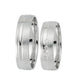 • Glänzend sind bei diesem 5.5 mm breiten Trauringpaar nicht nur die schmalen Flanken sondern der gesamte Auftritt. Die Designer der Trauringmanufaktur Schwarz haben diesen Preziosen, nach den polierten Flanken, eine breite mittlere Straße gegönnt. Dominierend ist diese Straße vor allem durch die quergebürstete Oberfläche. Die schimmert edel und bietet einen besonders schönen Untergrund für das klare, eingearbeitete, Muster. Das besteht aus schräg verlaufenden Glanzfugen die paarweise angeordnet sind und mit einem Abstand von zirka 12.0 mm rundum gruppiert sind. Zwischen zwei Fugenpaaren ist bei dem Damenring Ihrer Lieblingsfrau mittig ein großer und strahlender Zirkonia eingerieben. Die Ringe sind in Silber aber auch in Gelbgold, Rotgold, Weißgold, Palladium und Platin erhältlich. Auch können die Zirkonia durch Brillanten ersetzt werden. Die Preise, abgesehen von Silber, sowie die individuellen Lieferzeiten der unterschiedlichen Legierungen teilen wir Ihnen gerne bei Interesse mit. Die Ringe sind auch einzeln oder ohne Zirkonia/Brillanten bestellbar. Bitte senden Sie uns bei Fragen eine Email.