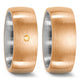 Edle Ringe aus Titan und Bronze in 7.0 mm breite. Ti-Bronze heißt diese neu erschaffene Serie aus dem Hause TitanFactory. Der innere Kern besteht aus Titan, dass rötlich schimmernde Material besteht aus Bronze. Die Rillen der Oberfläche symbolisieren den Weg der Zusammengehörigkeit. Der Brautring ist mit 3 echten Brillanten die Schutz in den Rillen bekommen, besetzt. Die Ringe sind auch einzeln oder ohne Brillanten bestellbar, bitte senden Sie uns hierzu eine Mail.